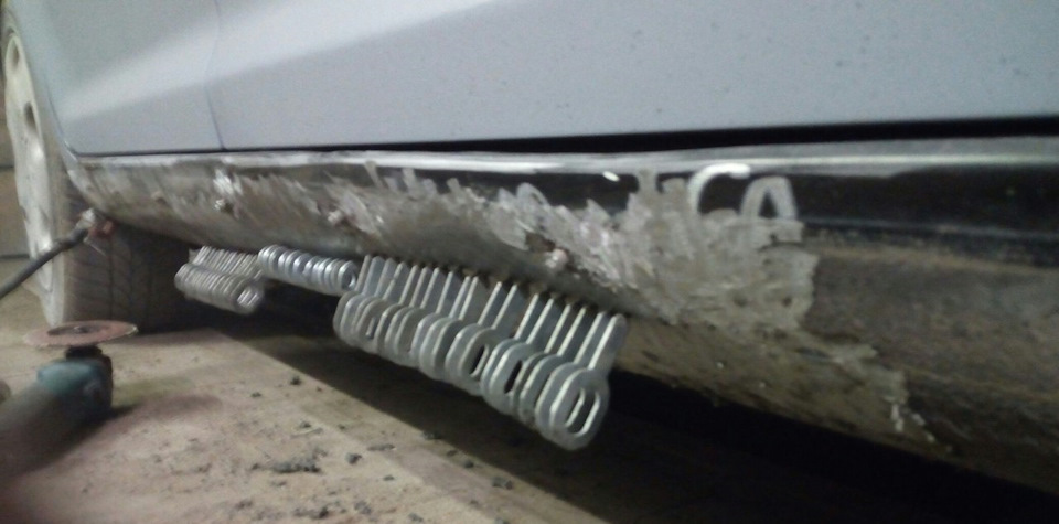 Ставим порог, Завариваем дырки что напилили. На заводе типо того и делают кстати.