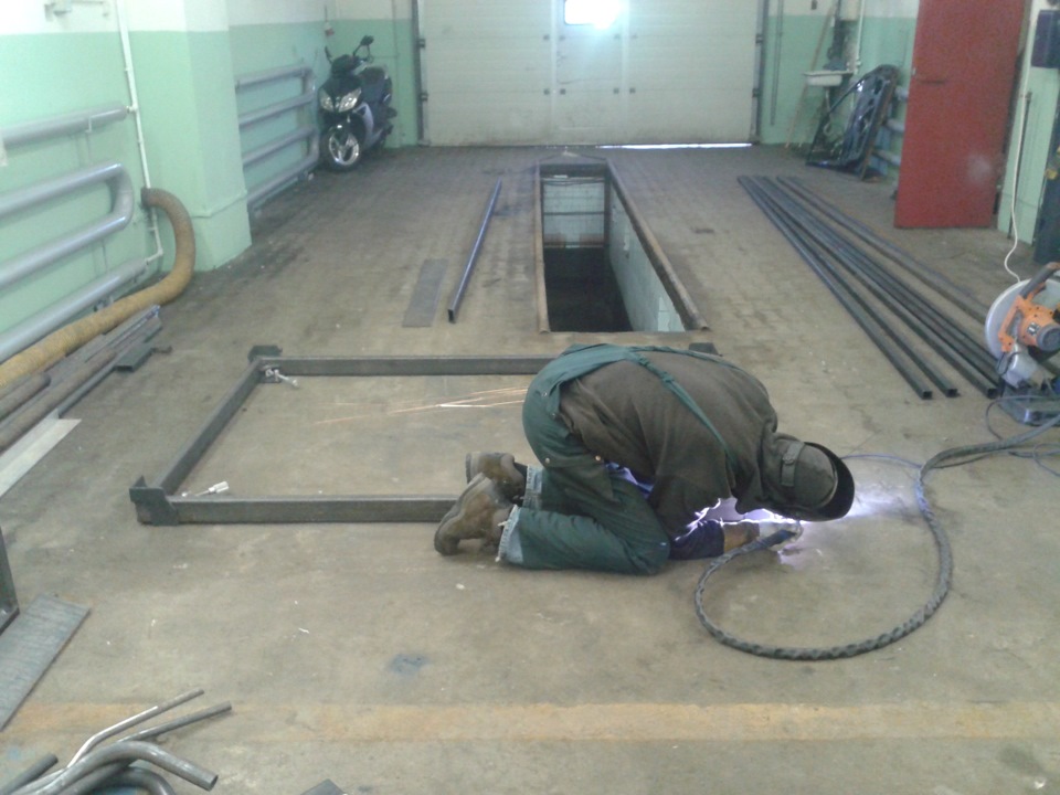 Рама сделана из толстостенной профильной трубы 80х40. За неимением других поверхностей ее пришлось сваривать прямо на полу. Варили TIG’ом, в аргоне.